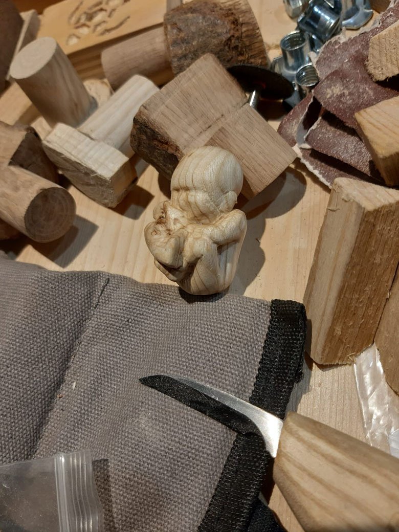 From an oak branch that should have ended up in the fireplace, this work was created.