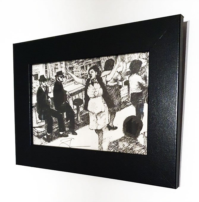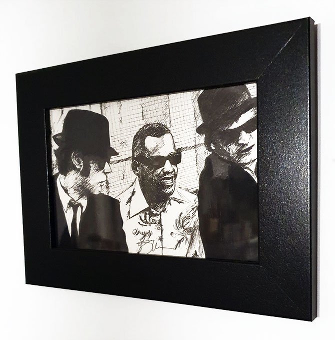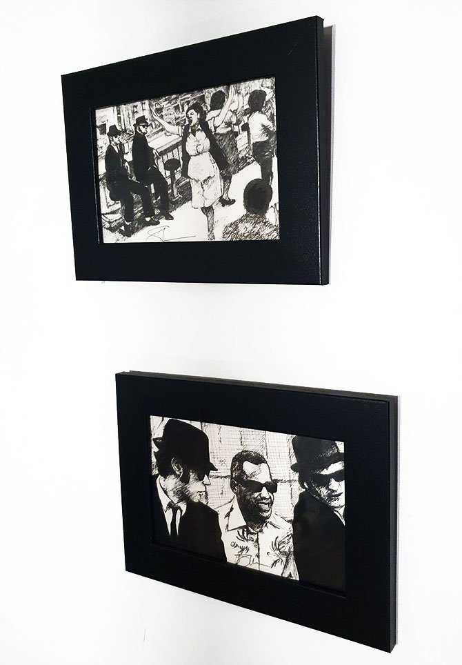 Now open them and look at these two ink paintings that capture the magic of those moments. Aretha's vocal power and Ray's genius are fixed on paper, turning musical notes into ink lines.