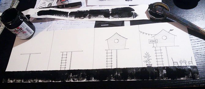 Ink and acrylic on paper