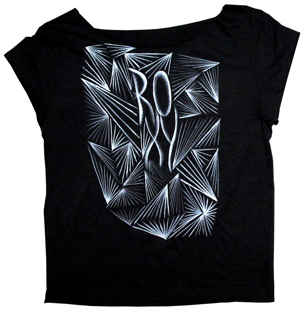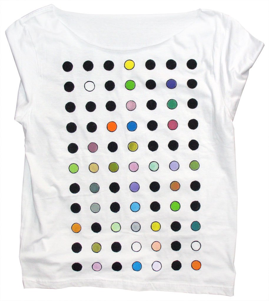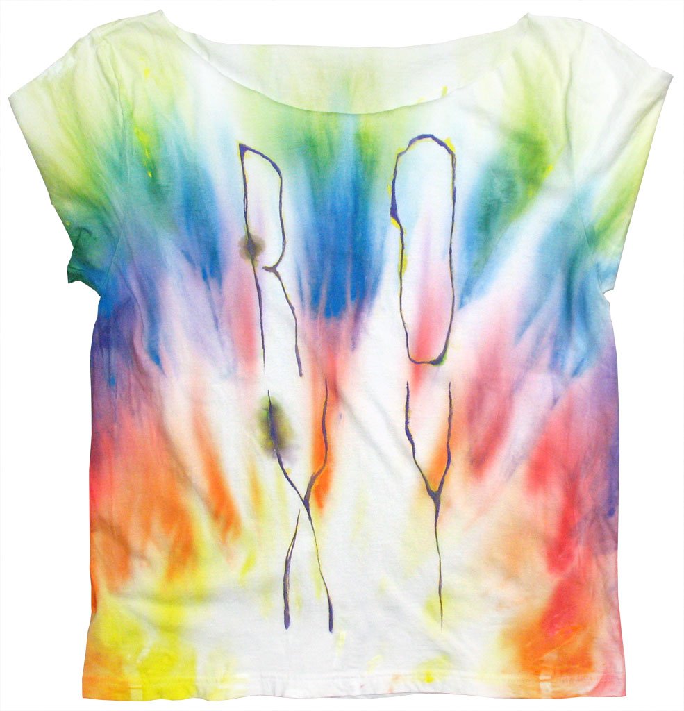 Acrylic on knit. Watercolor. Mixed work between stencil and freehand.