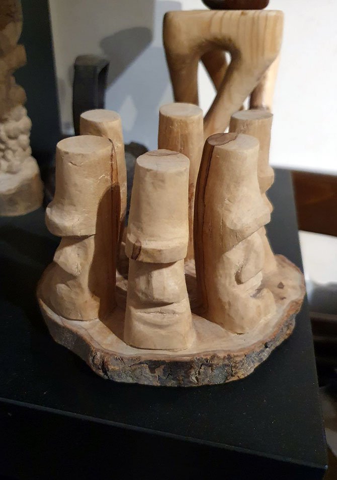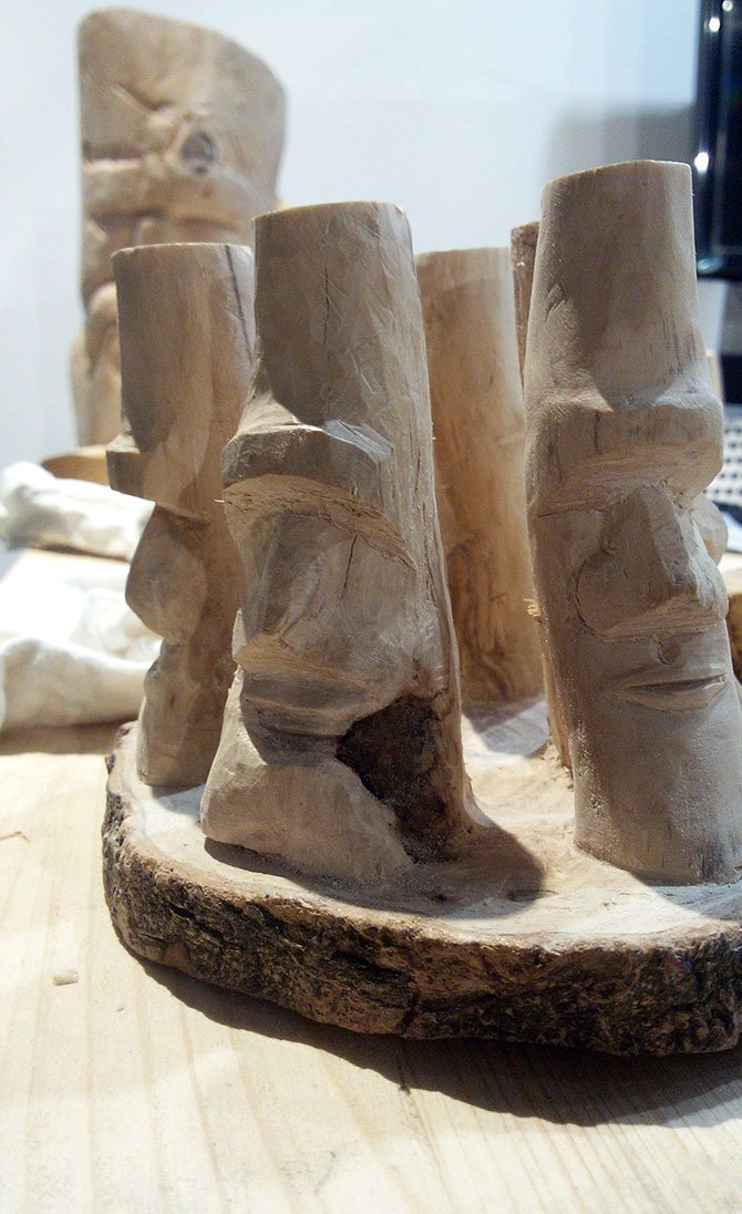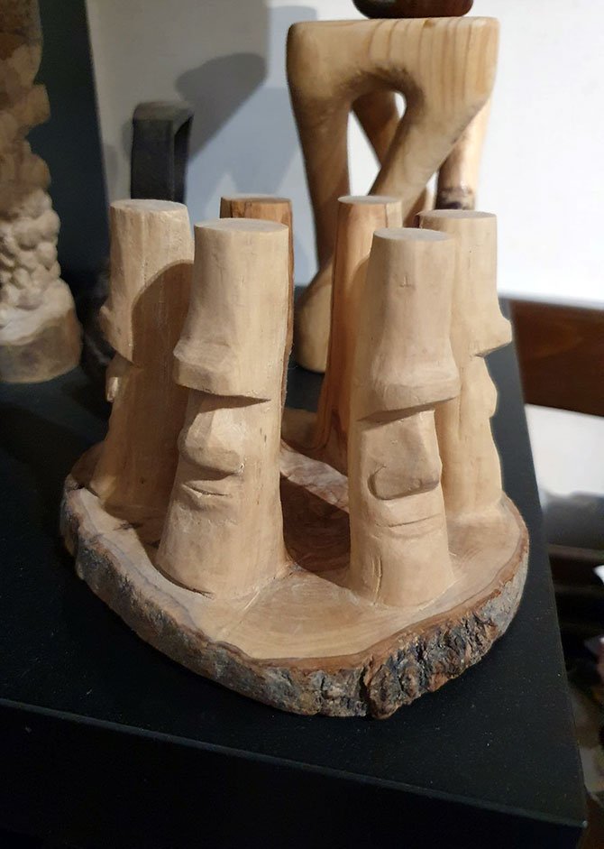 Hand-carved olive tree trunk.