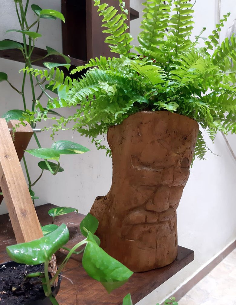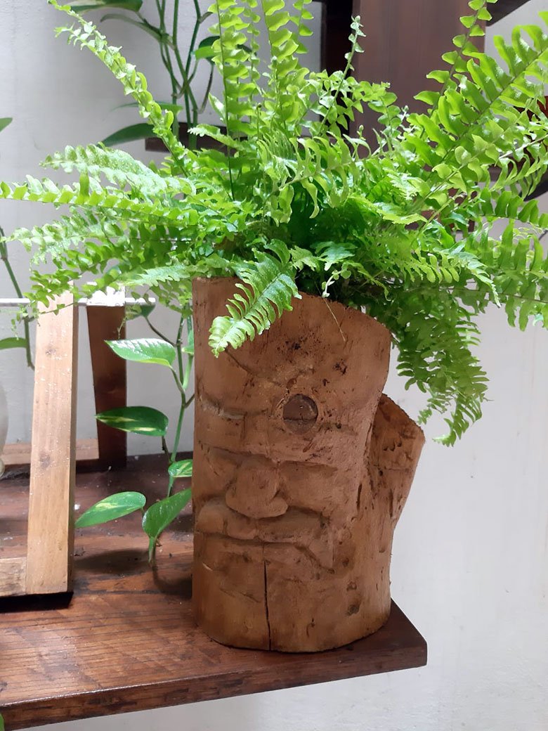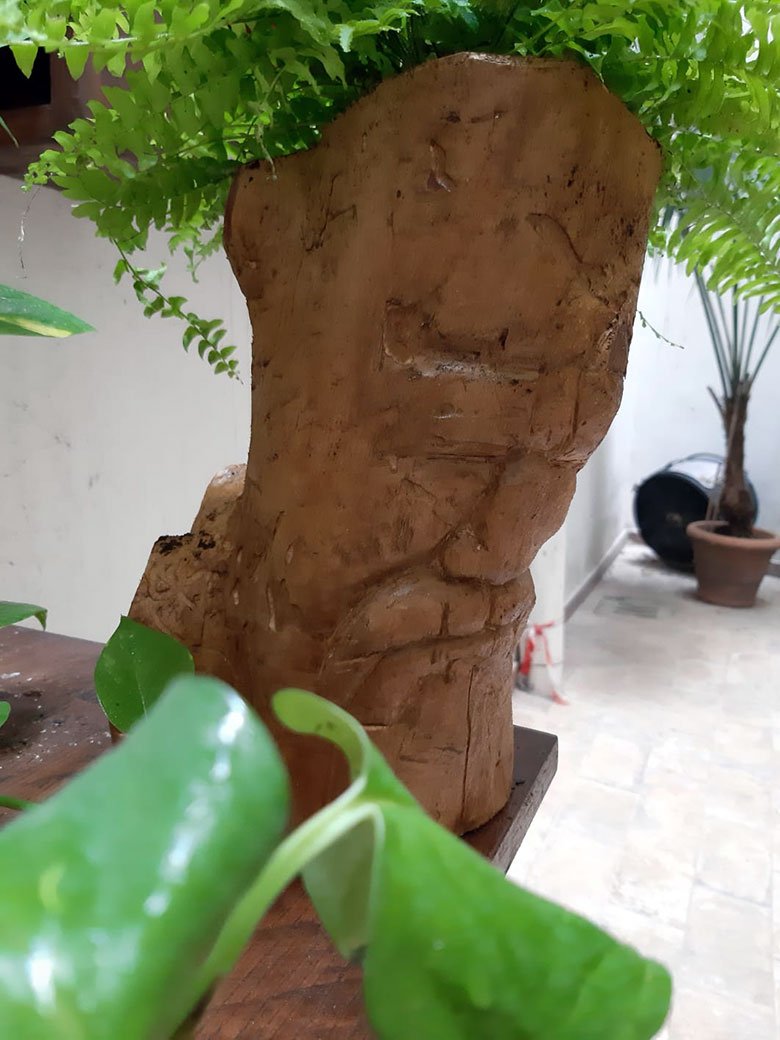 This sculpture is more than just a face carved from a log: it is a vase that, when filled with a fern, takes on an uncanny resemblance to the Sideshow Bob character!
